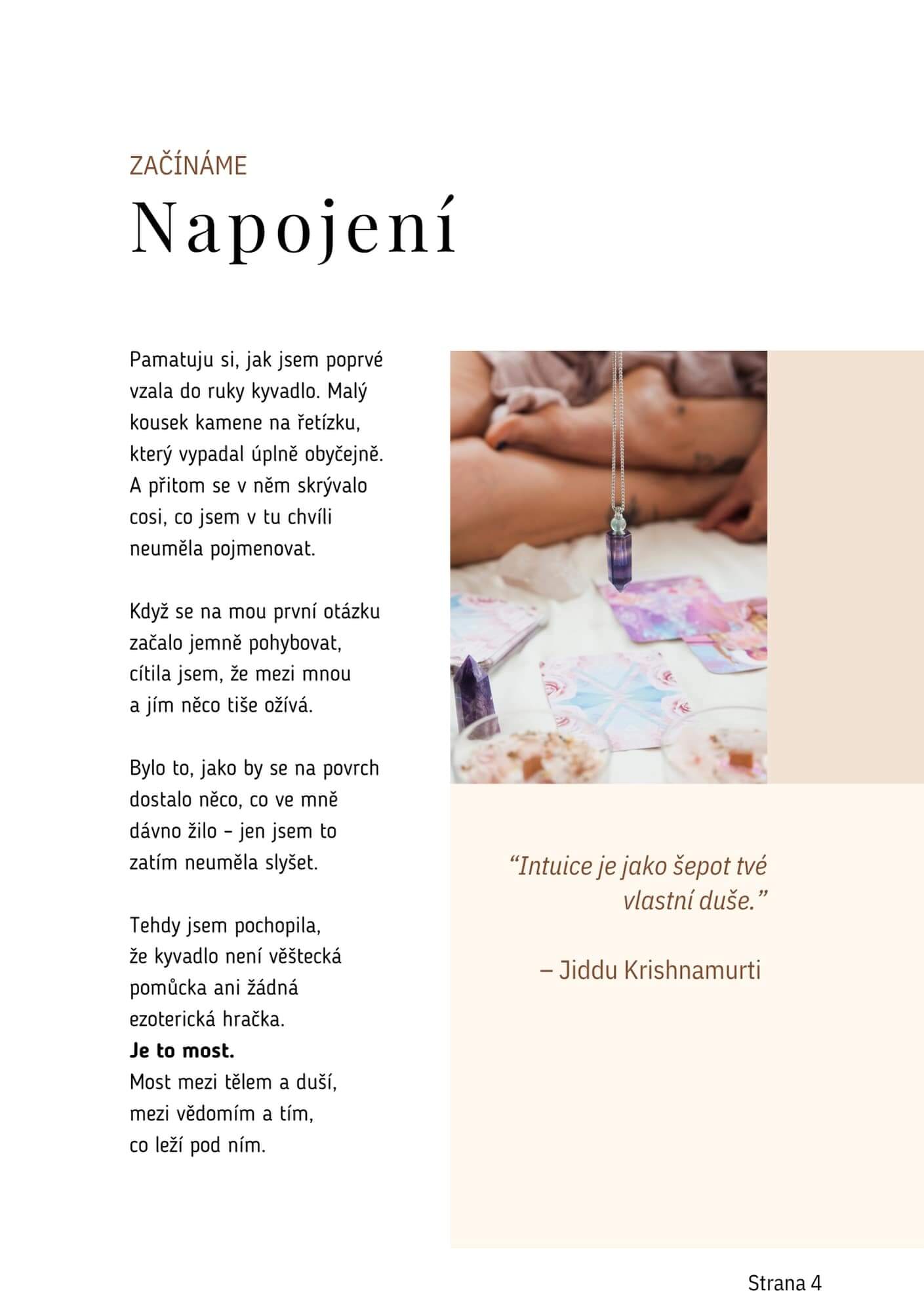 V eBooku si vysvětlíme, jak kyvadlo odráží kvalitu otázky a tvůj vnitřní stav. Samozřejmě se naučíš jak správně pracovat s kyvadlem, aby byly odpovědi co nejčistší a co nejvíce užitečné. Velkým přínosem eBooku je i část o umění ptát se. Není to totiž tak jednoduché, jak by se mohlo zdát – každé slovo, tón i záměr ovlivňují, jakou odpověď vlastně dostaneš.